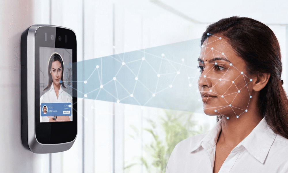 Facial biometric verification establishes identity by analysing distinct facial features, such as the distance between the eyes or the shape of the nose, and converting them into a digital template for comparison with stored data, often using artificial intelligence tools.
